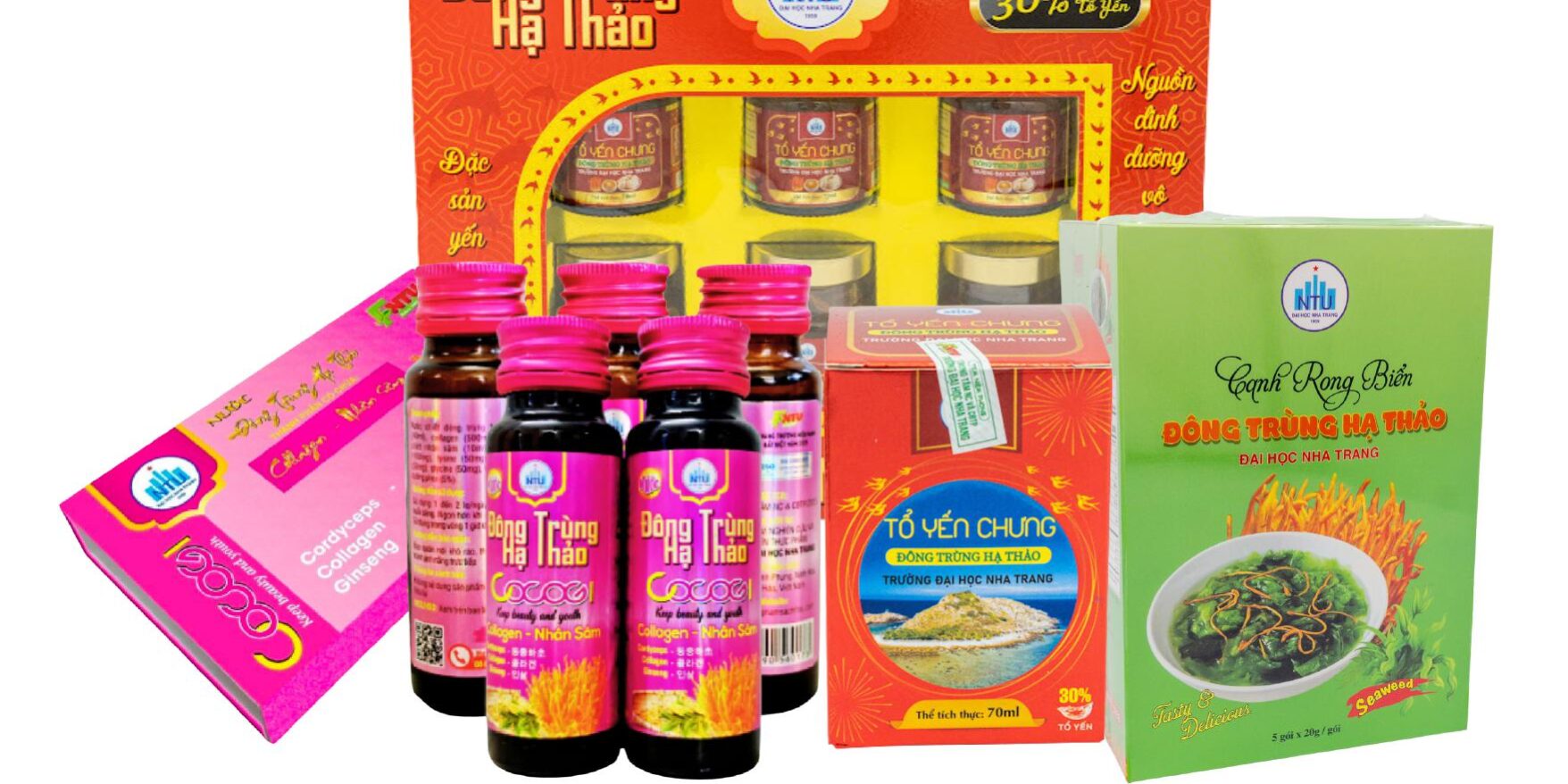 - Nước ĐTHT: Là sự kết hợp hoàn hảo giữa ĐTHT, sâm dây Ngọc Linh và Collagen. Sản phẩm này không chỉ giúp cung cấp năng lượng mà còn có tác dụng tăng cường sức đề kháng, chống lão hóa và tái tạo da. Thông qua quy trình chế biến tinh tế tạo nên hương vị tinh khiết, giúp trải nghiệm cảm giác thanh mát ngọt ngào.
